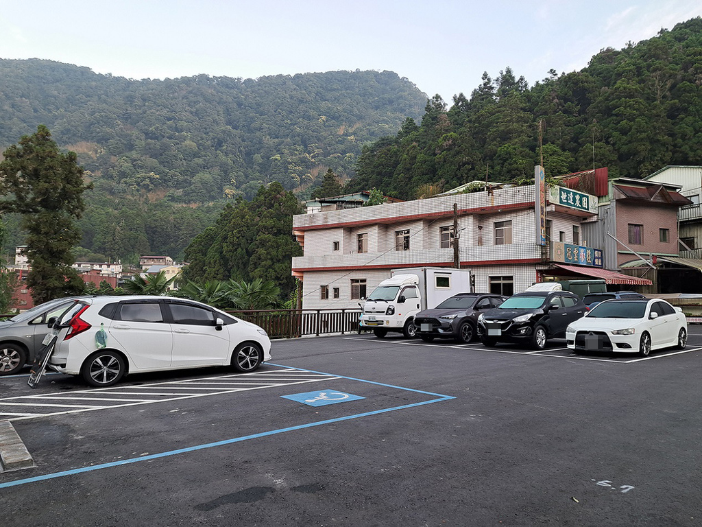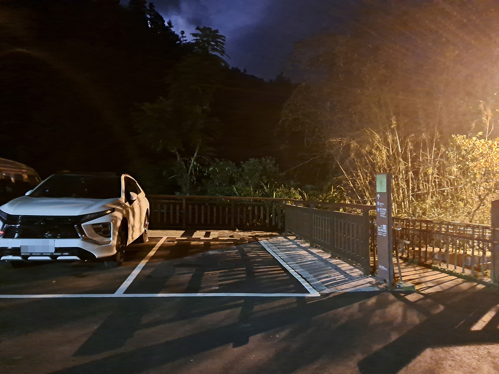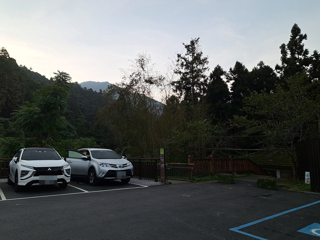 奮起湖車站周邊假日白天停車位一位難求,之前就經歷過,可能要傍晚才會紓解。反正也去過很多次了,所以我們傍晚在家先洗好澡才出門,車泊「多林公有停車場」,也是奮起湖大凍山登山口,隔天清晨就可直接走步道了。