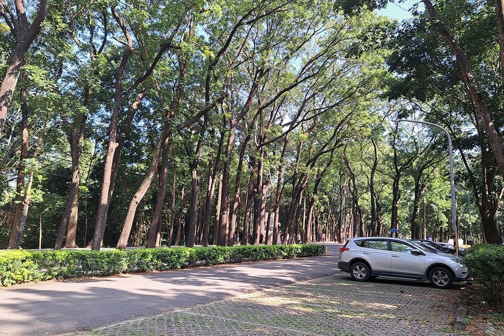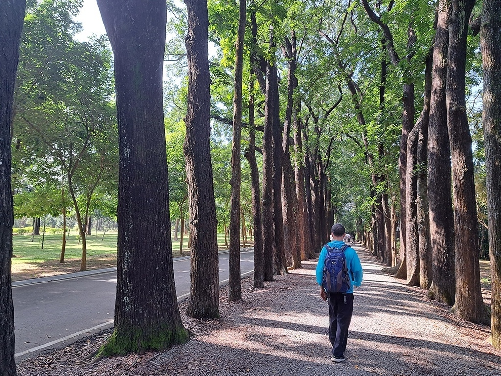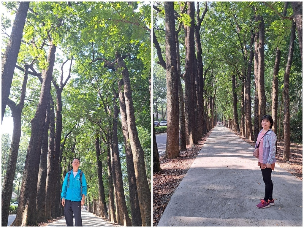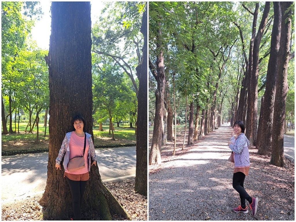 除了桃花心木大道,另一側也有林間步道和自行車道,可以走一圈O型,不過樹蔭不多,我們還是原路來回。