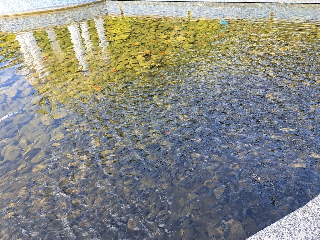 水池的吳郭魚爆多,黑壓壓的一片幾乎都是!反而錦鯉剩沒幾隻了。