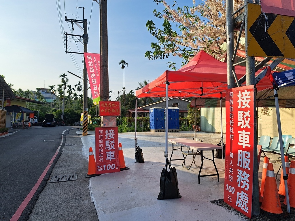 「阿拉伯粉紅村」就在166縣道與台3線交叉路口的巷子前行約600m,雖然一早根本沒車,但我們怕離開時會塞車,還是把車停在台3線上,再步行進去。