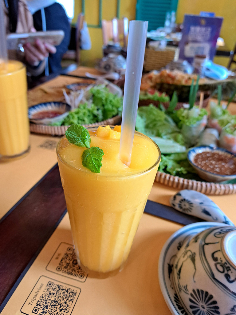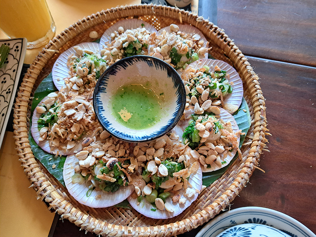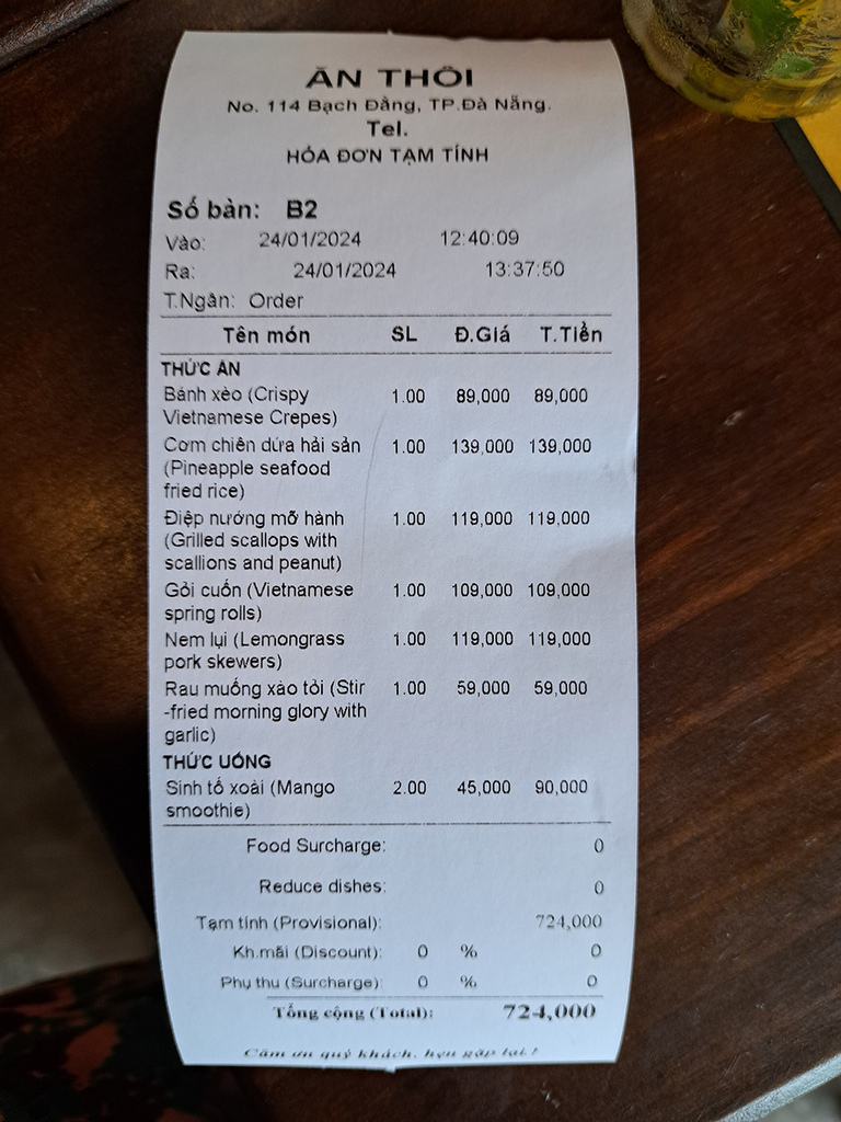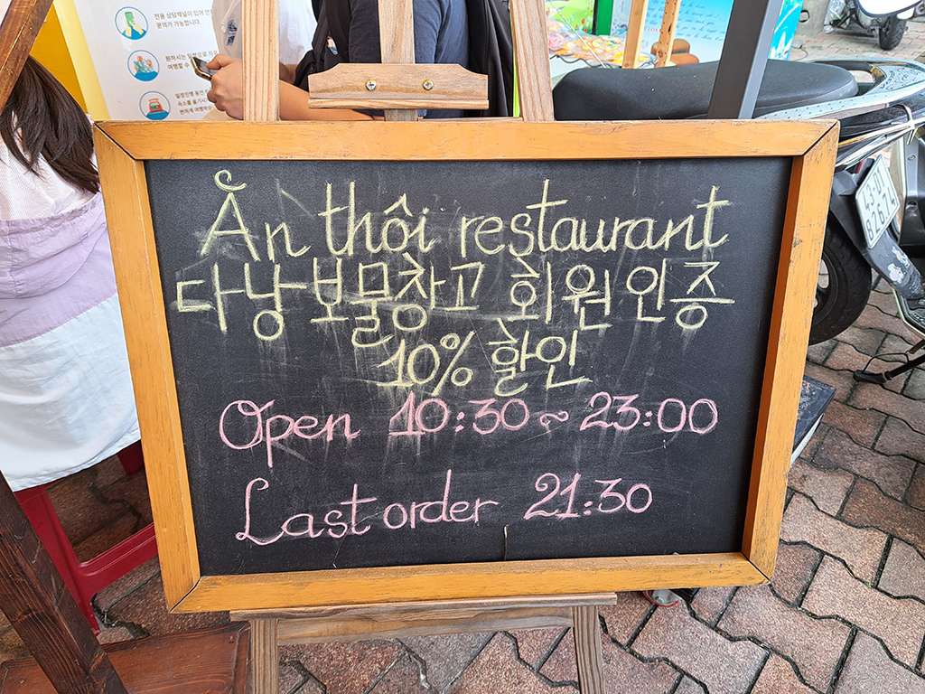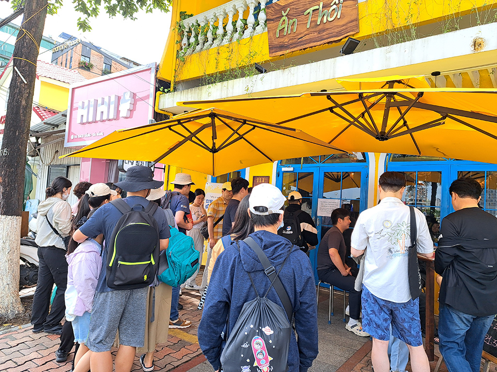 航班因塞機,登機後關在機艙等了1小起才起飛,原訂09:15抵達峴港,但出機艙門都已經10:20了,入境審查也等了超級久,搭Grab到飯店寄放行李後,先走到漢市場換錢,再到這家Ăn Thôi 餐廳都已經12:20了!門口已擠滿排隊用餐的客人了!