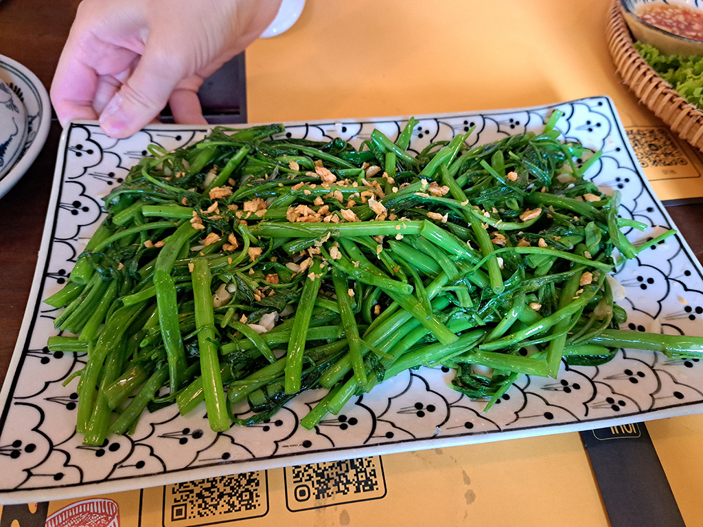 當然要來一盤炒空心菜59K,台幣也才77元!台灣熱炒店100元都快找不到了!