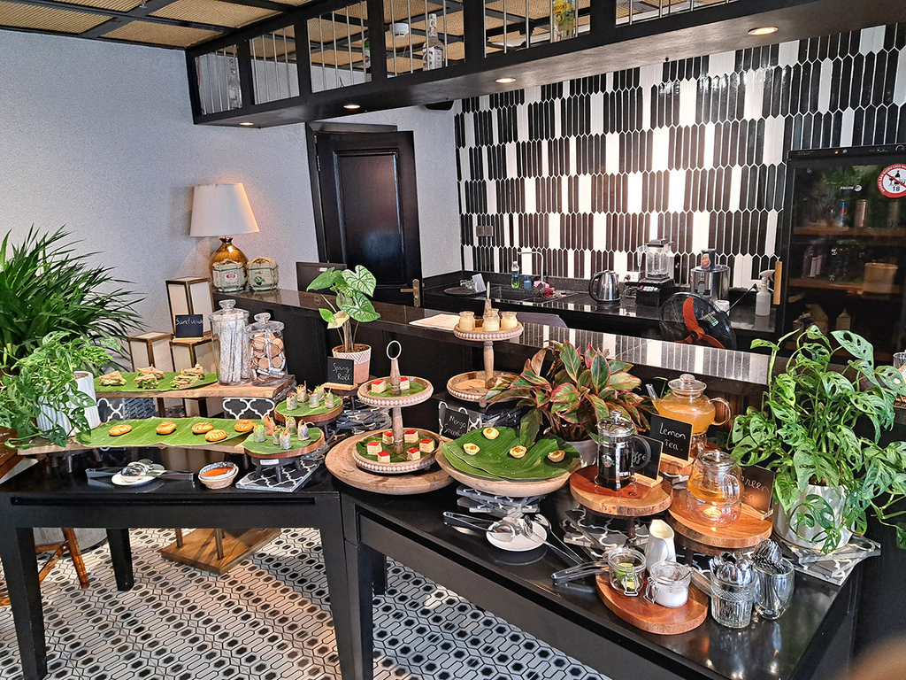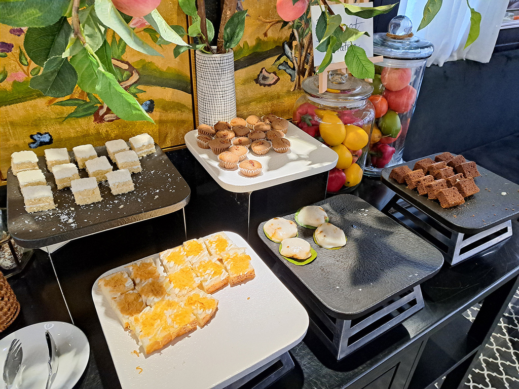 下午茶在頂樓泳池的室內空間。我們這次訂了2家有提供下午茶的飯店,但只有這家下午茶是自助式的,樣式也比較多,只是我們午餐在Ăn Thôi 餐廳吃太飽,吃不太多。