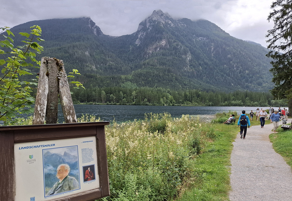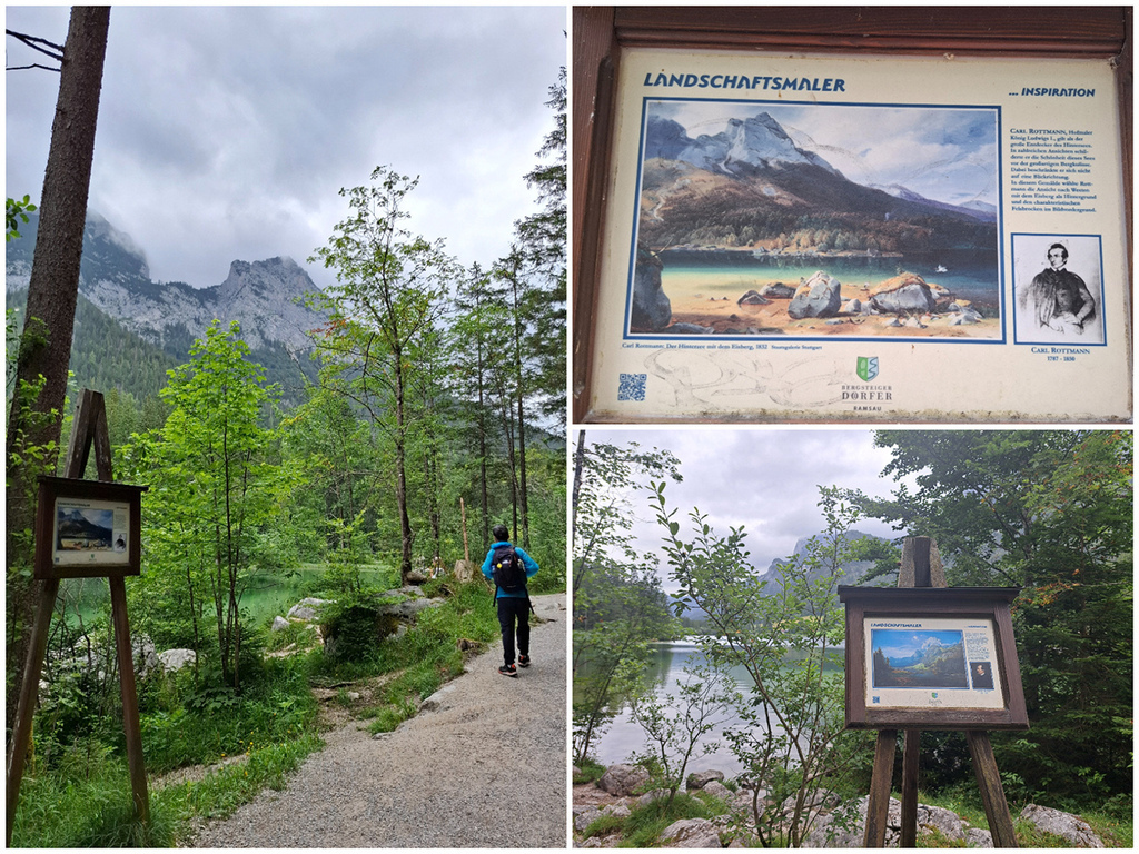辛特湖的美景是許多畫家的畫作靈感來源,步道上展示多幅畫作與實景對照。