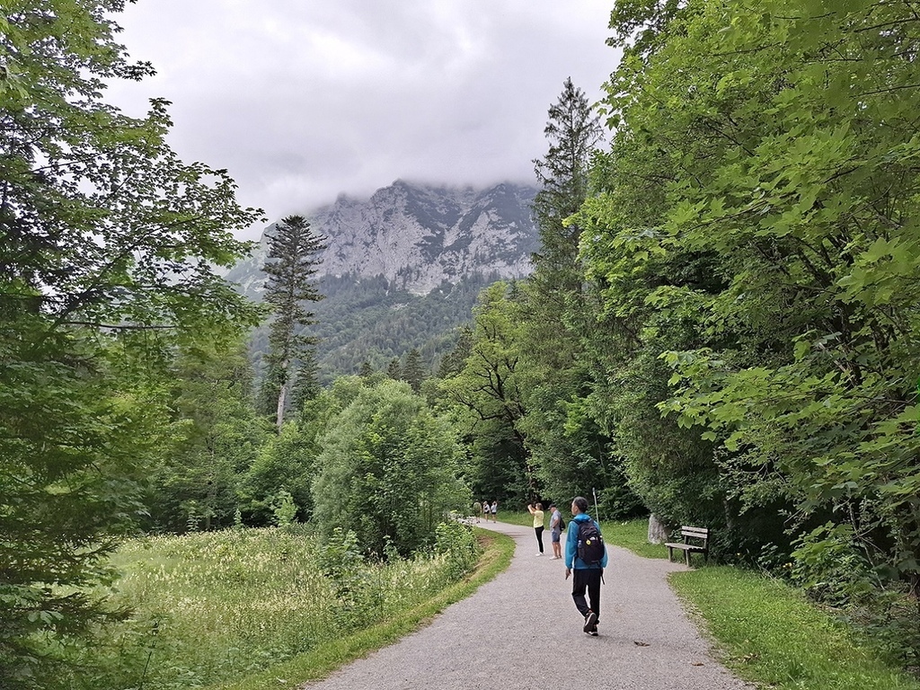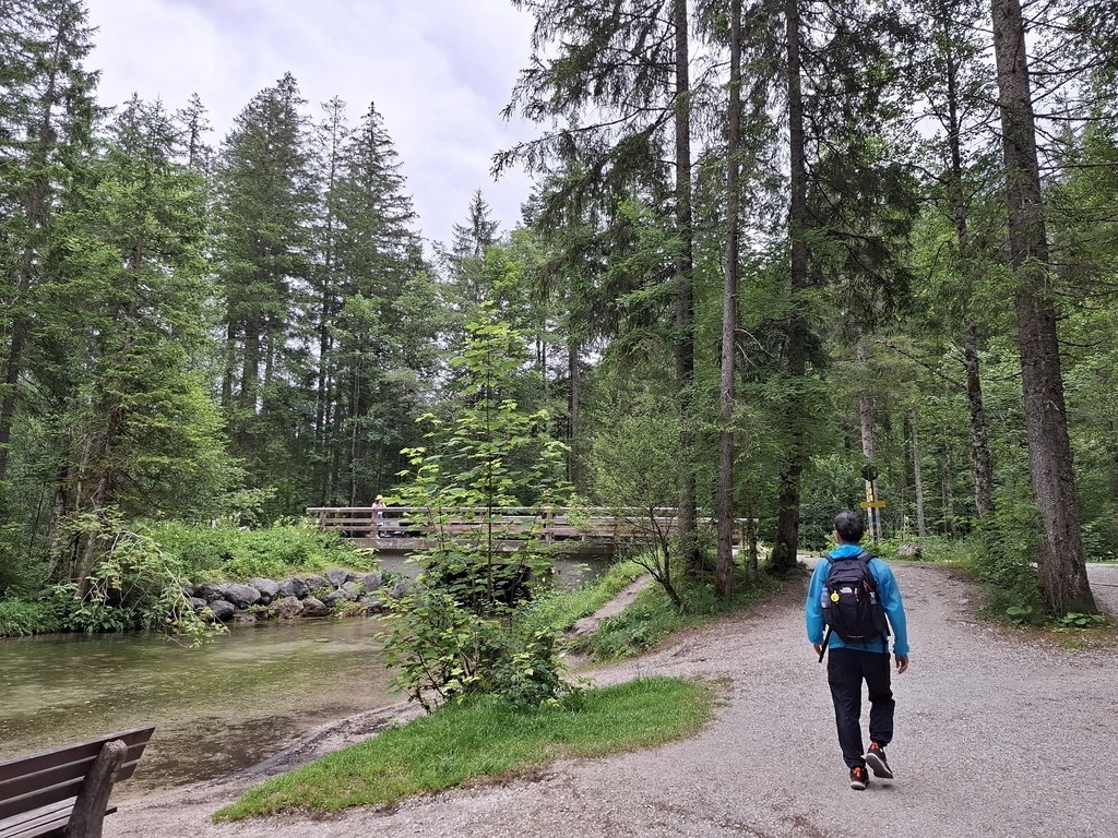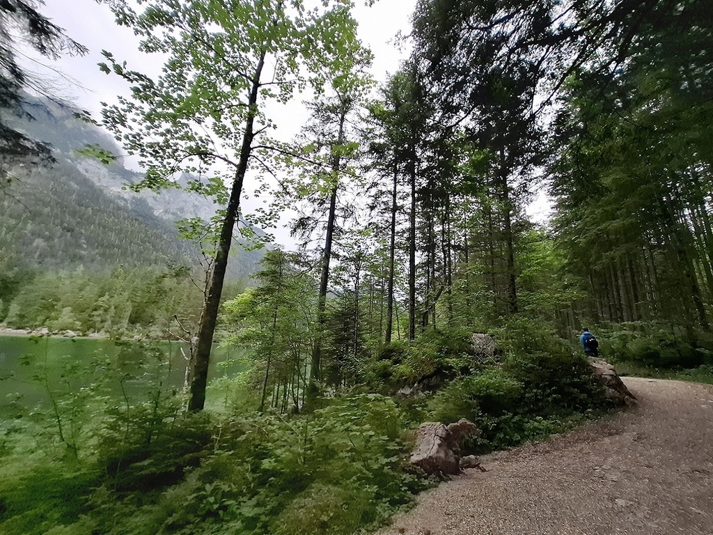 辛特湖不大,環湖步道大約2.6km,但因為天候不佳,我們一開始是打算環半湖就好,看走南側或是北側,然後走到Hintersee公車站搭846公車回到Berchtesgaden。若天氣許可,中途再回藍紹教堂附近走走。