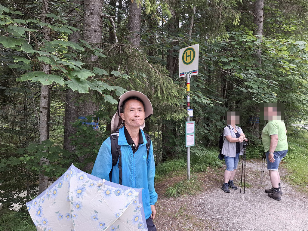 上車後我並沒意識到要在Hintersee Zauberwald這站下車,多虧老公發現一堆遊客下車,問我們是不是也要在這下車?我才驚覺我們不是要搭到終點的Hintersee公車站,趕緊跟著遊客下車。