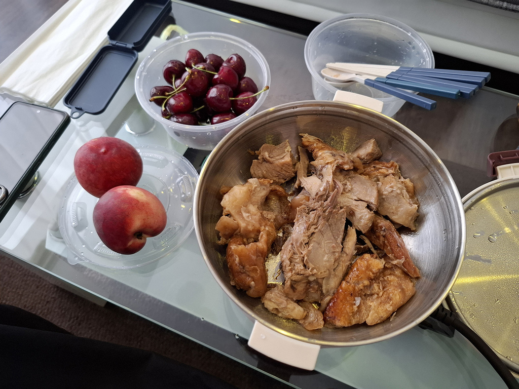 我們第一次開箱使用就是抵達Füssen飯店時,把打包回來的德國豬腳加熱當午餐解決掉,不然飯店也沒有微波爐,可能只能當冷盤吃或丟掉了。