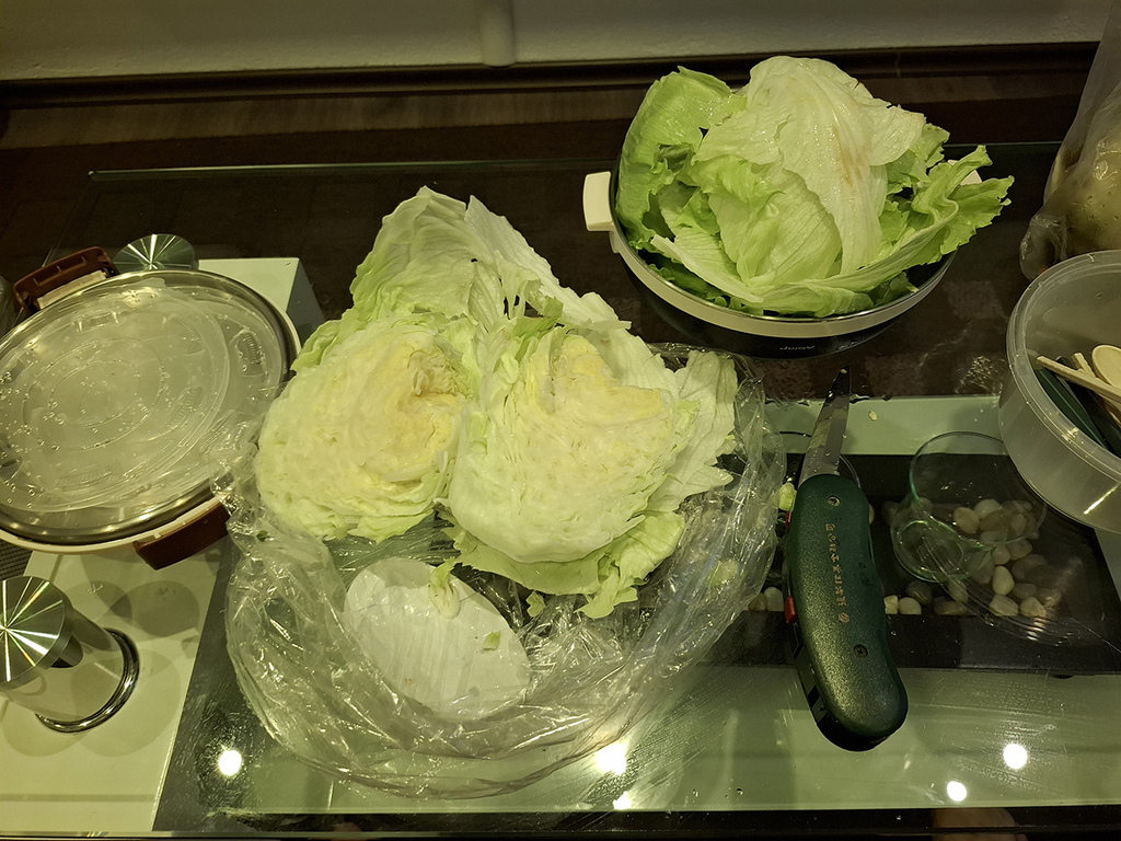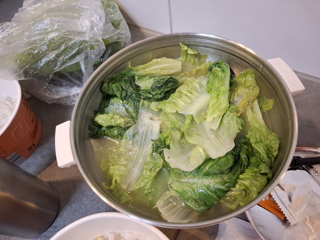 因為鍋子不大,所以一個生菜要分好幾次煮。