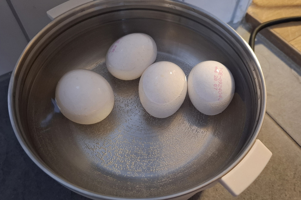 隔天早上,雖然民宿還有早餐,但我們退房前還是先把雞蛋先水煮起來當午餐,避免換飯店寄放行李時打破了。