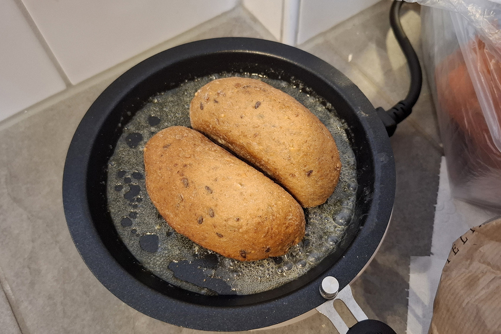 Weidegg - hotel garni入住時免費提供給房客取用的麵包,我就用不沾煎盤加熱奶油塗抹比較香,也是當午餐吃。
