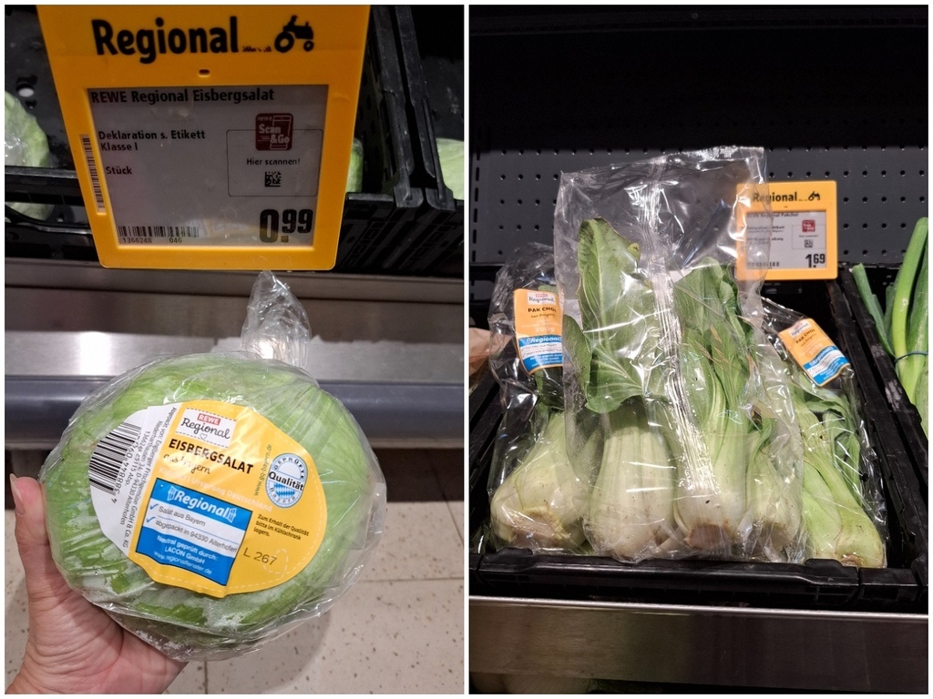 超市一顆生菜才0.99歐,一小包青江菜還要1.69歐,生菜在歐洲比台灣便宜很多!