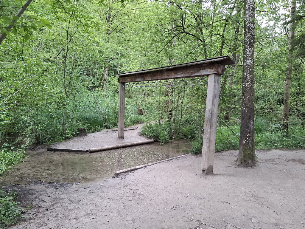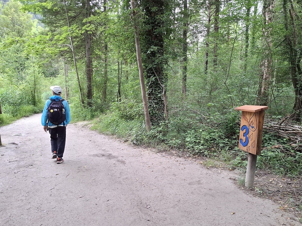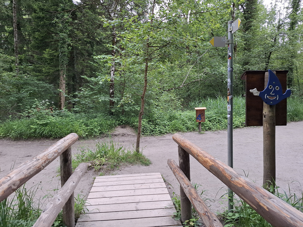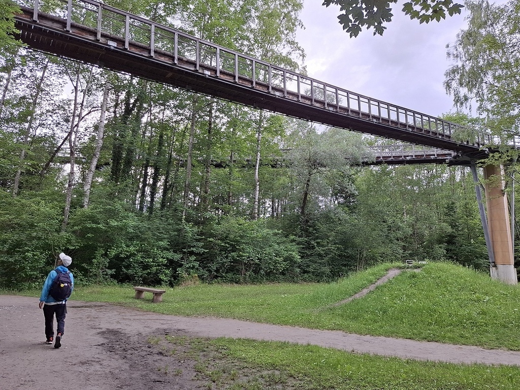 大約150m留意一下路邊有個缺口,往下就可以接到Walderlebniszentrum Ziegelwies森林探險中心的Auwaldpfad河岸森林步道。