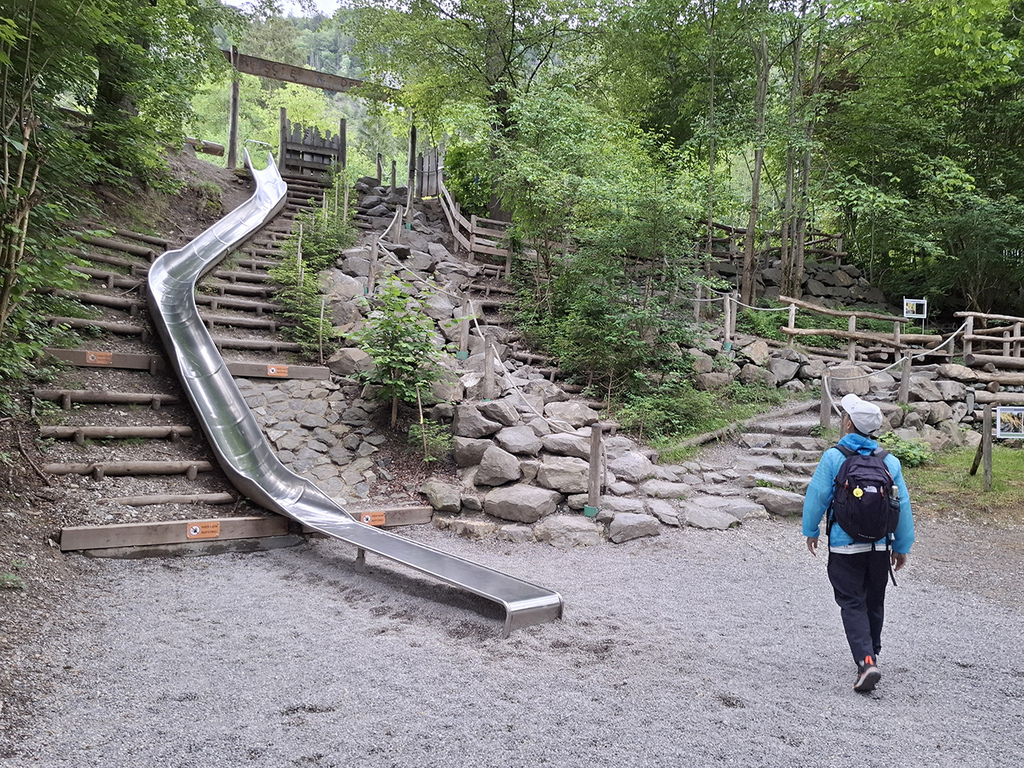 Auwaldpfad河岸森林步道另外一側的出入口,也可以溜滑梯下來!