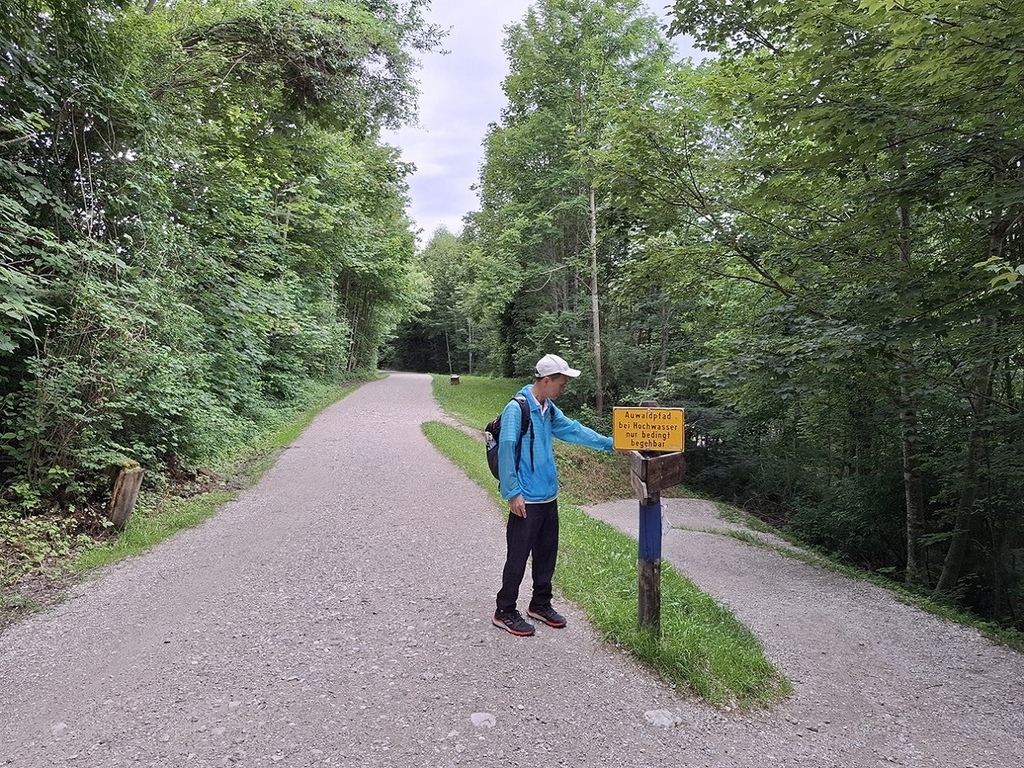 走下斜坡後左右兩邊都可以走,Auwaldpfad是環狀步道,我們先走左邊看起來近一點。