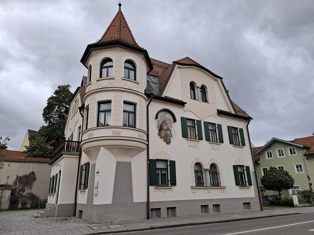 Kaiser-Maximilian-Platz 街上的一棟漂亮別墅。帶有半圓形角凸窗和帳篷屋頂,新巴洛克風格的古蹟建築,旁邊還有留有14世紀城市防禦工事的一部分(可惜我沒拍到)。