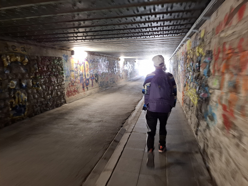 本來我們還慢慢走,這時忽然有一組家庭步伐快速地超越我們往前直衝,感覺上就是要趕搭火車的樣子。