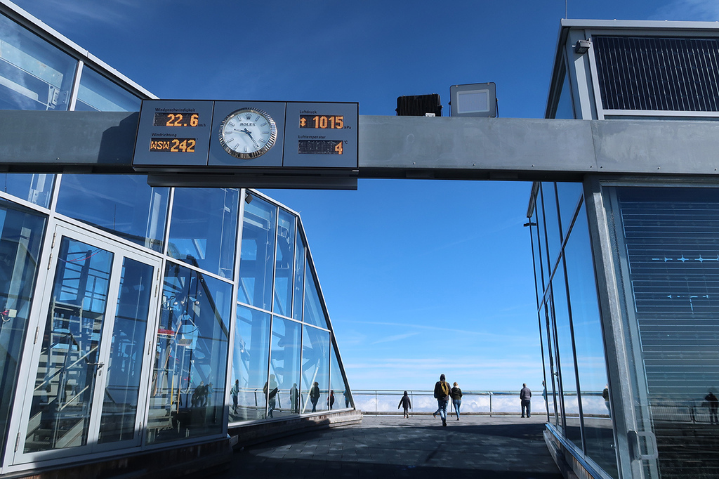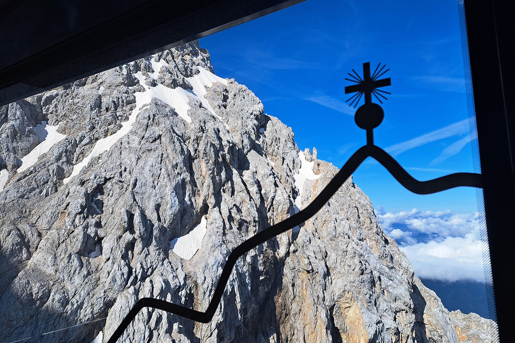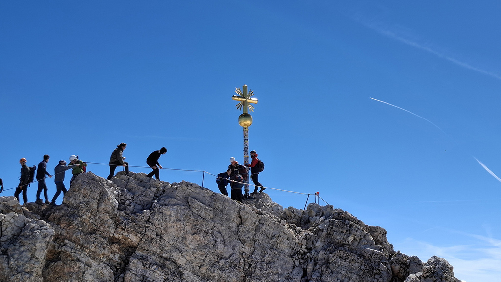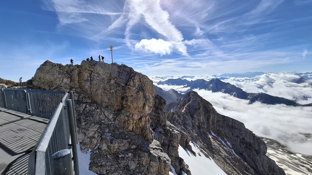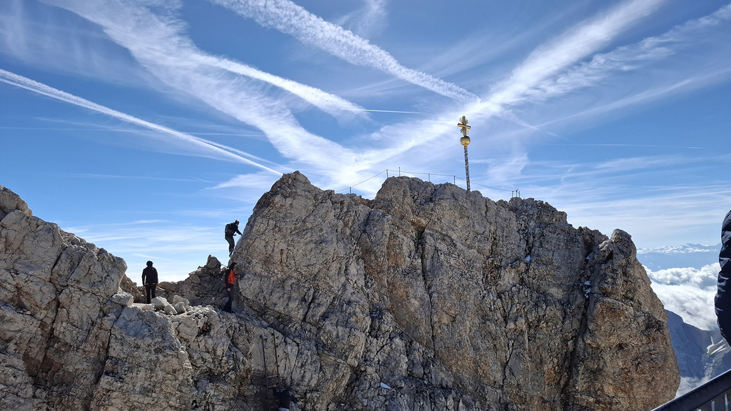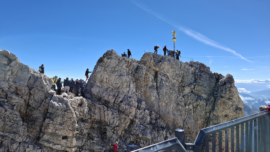 楚格峰最高點2,962 公尺,頂峰標誌性的金色十字架,就像台灣山頂的三角點。