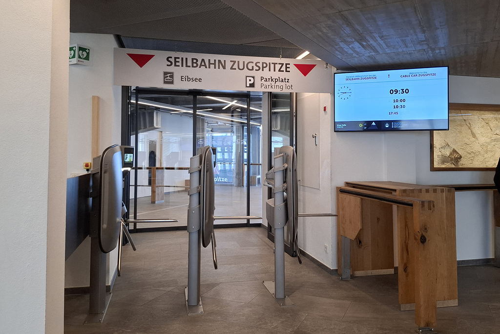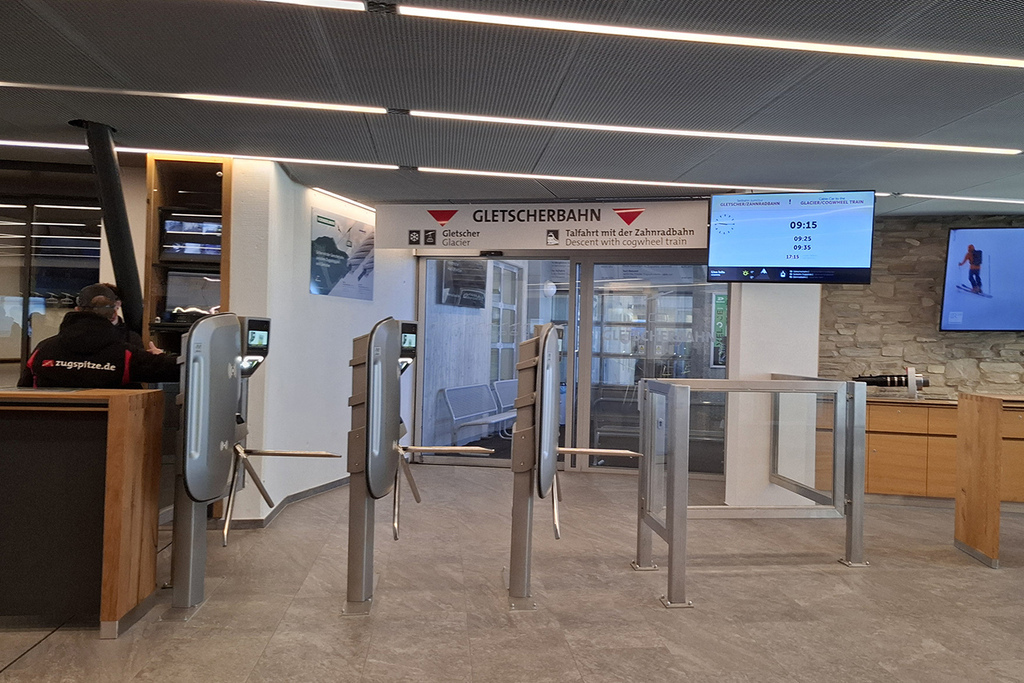 走過廊道就是奧地利楚格峰纜車站Tiroler Zugspitzbahn