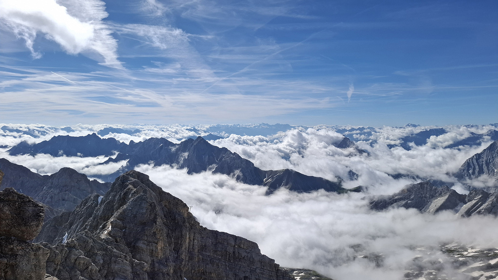 我在德國之巔,山、雲都在腳下,讚嘆連連!