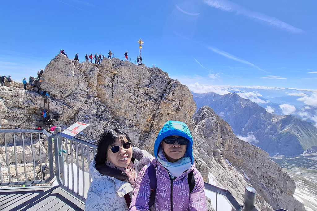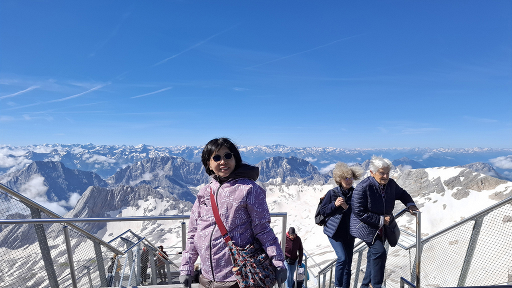終於在7/5第3天,在晴空萬里的暖陽中,登上德國之巔楚格峰Zugspitze,心中的震撼真的筆墨難以形容!