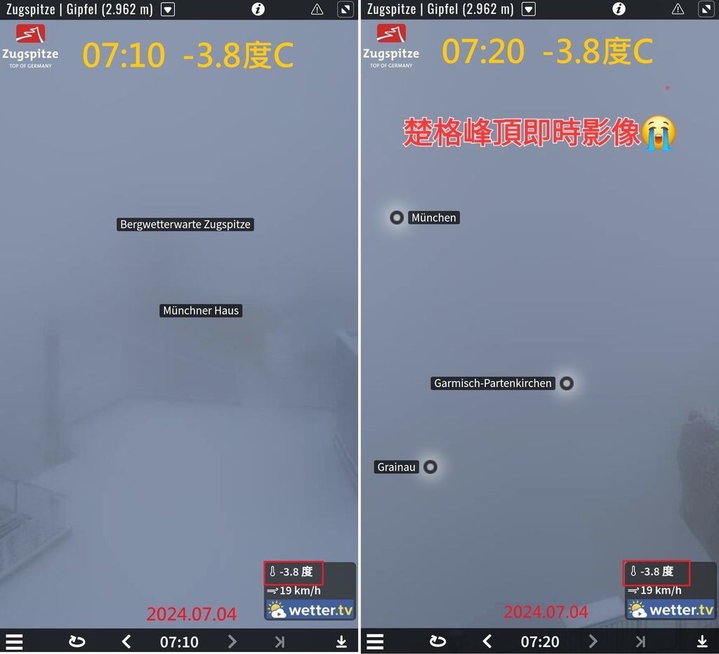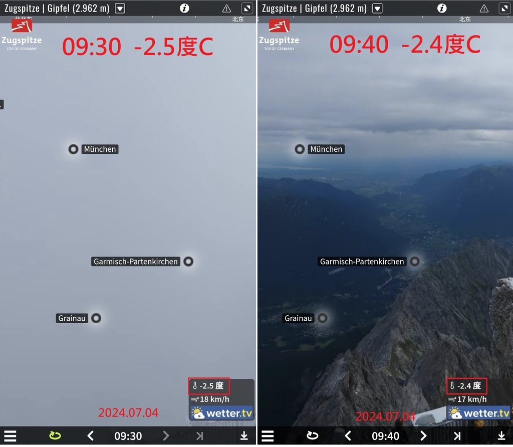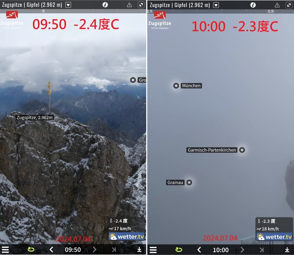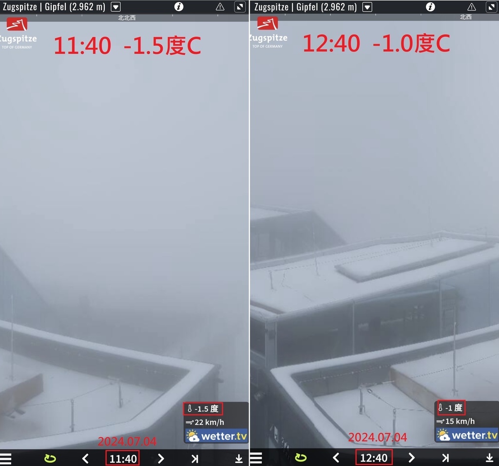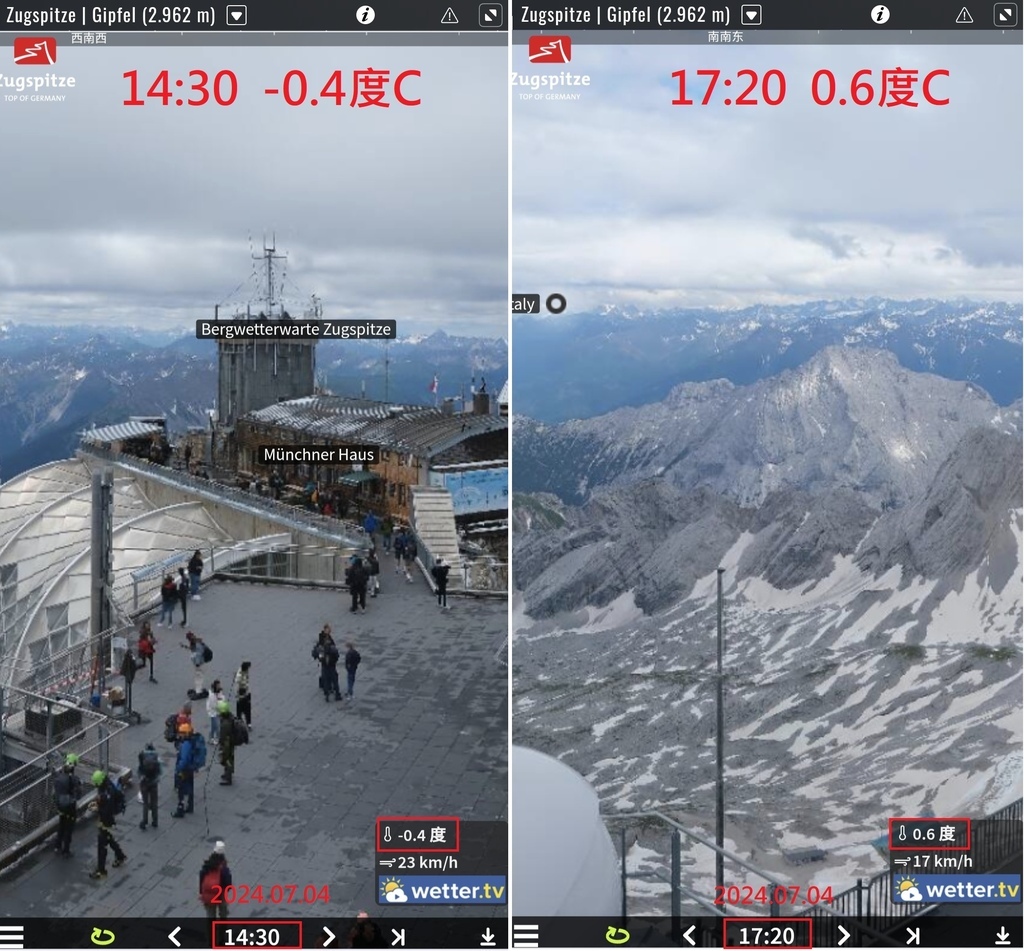 為了寫部落格,去德國楚格峰看查了一下山頂網路攝影機,發現居然可以回溯,不僅可回溯到7/5當天,甚至好多年前都還存著!