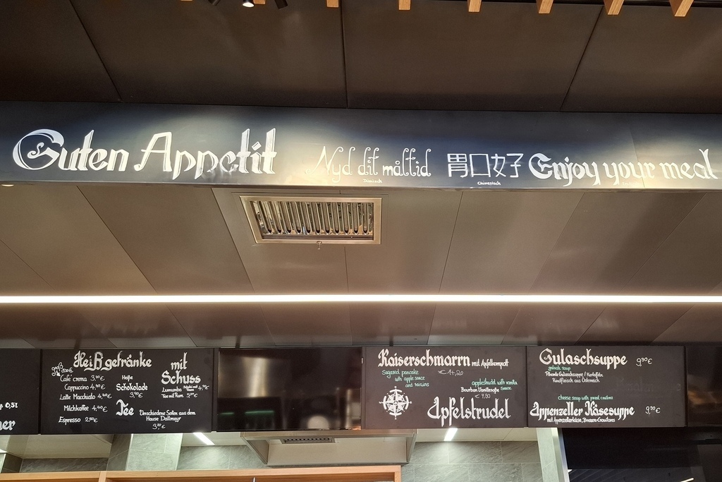 老公看到有人點這道餐點看起來還不錯,我再到結帳區看收銀機的價格~17.9歐,跟我們在新天鵝堡下的Ludwigs Stüberl餐廳真的差不多!