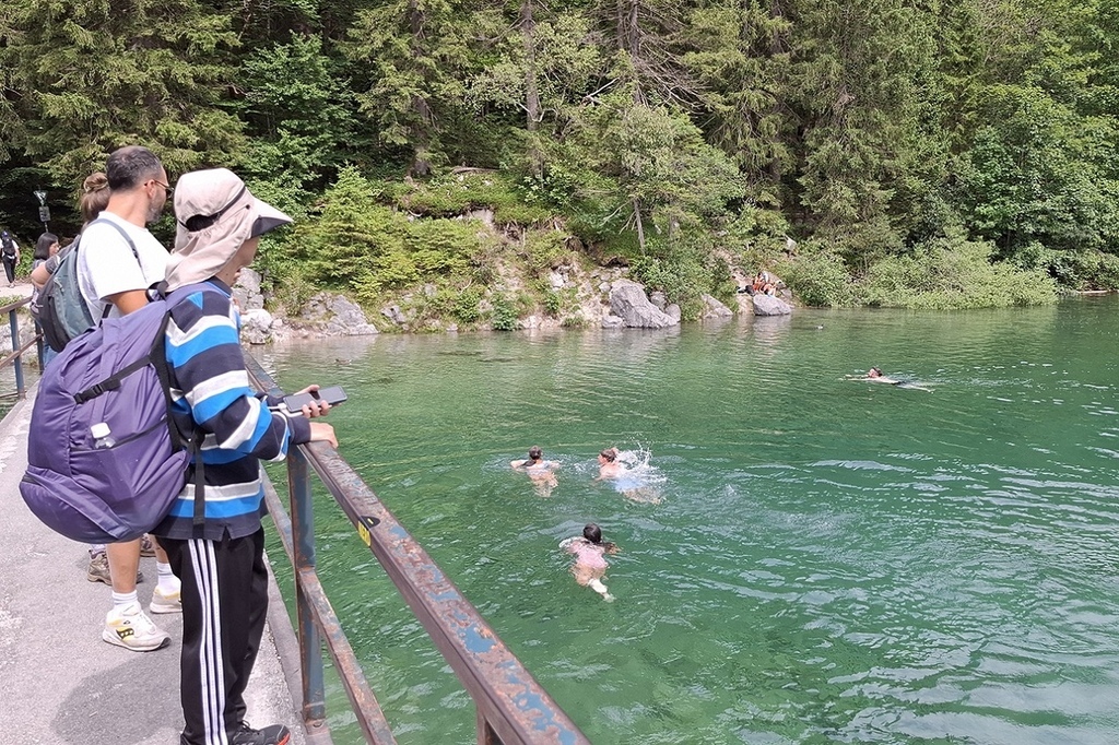 看到小孩直接從橋上跳水游泳,真是勇猛!湖水其實還滿冰的耶!