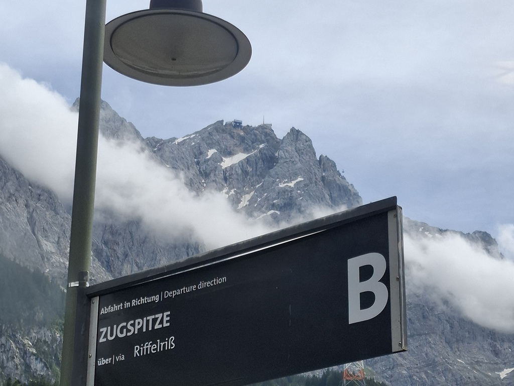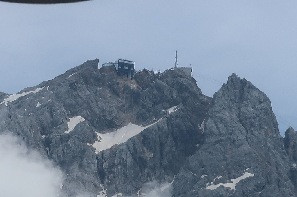 對岸的楚格峰纜車支架也清晰可見,可惜上方雲層太厚,看不到峰頂。