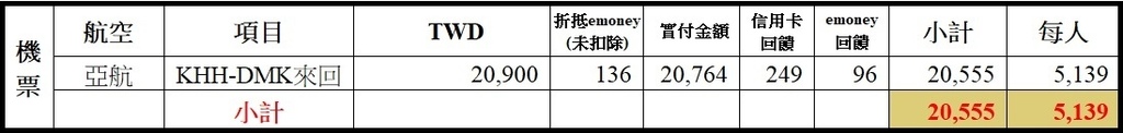 全家5+1日自由行總旅費含機票每人不到1萬!(4人同行,每人費用)