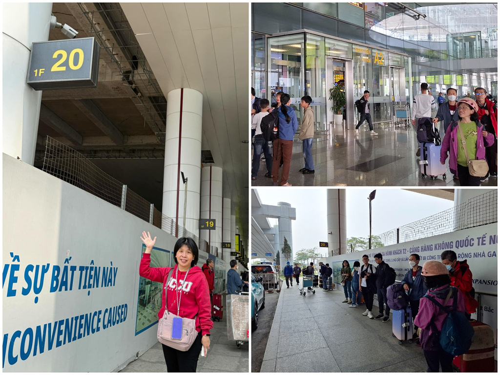 車票上的時間是指河內發車時間,加30分鐘才是機場搭車時間。我們不到1點就吃飽先來找搭車的地方,找到20號柱時,完全沒有任何G8的站牌或指示牌。因為車票上的搭乘地點用Google翻譯是「國際航廈1樓A1廳」,但20號柱卻是在A2出口這邊,讓我心生狐疑,我有沒有走錯地方?