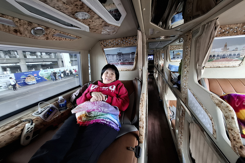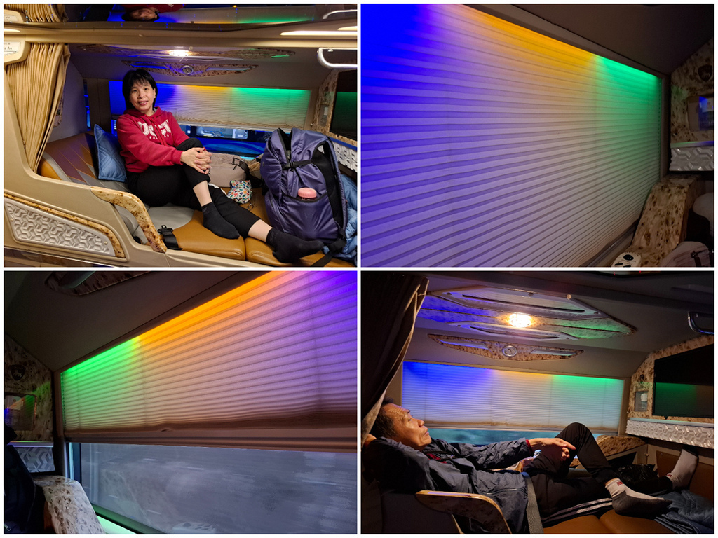 所以這次去程選擇白天搭臥舖巴士,加上我們是早班機,在機場吃個午餐再搭車,剛好在車上午休補眠,躺平也比較舒適。