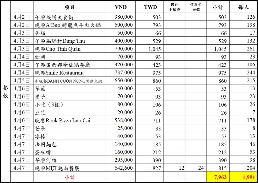 - 機票:越航 7,654元/人(華航9,731元/人)