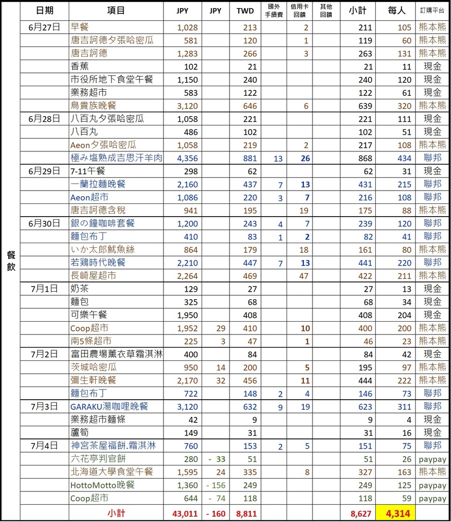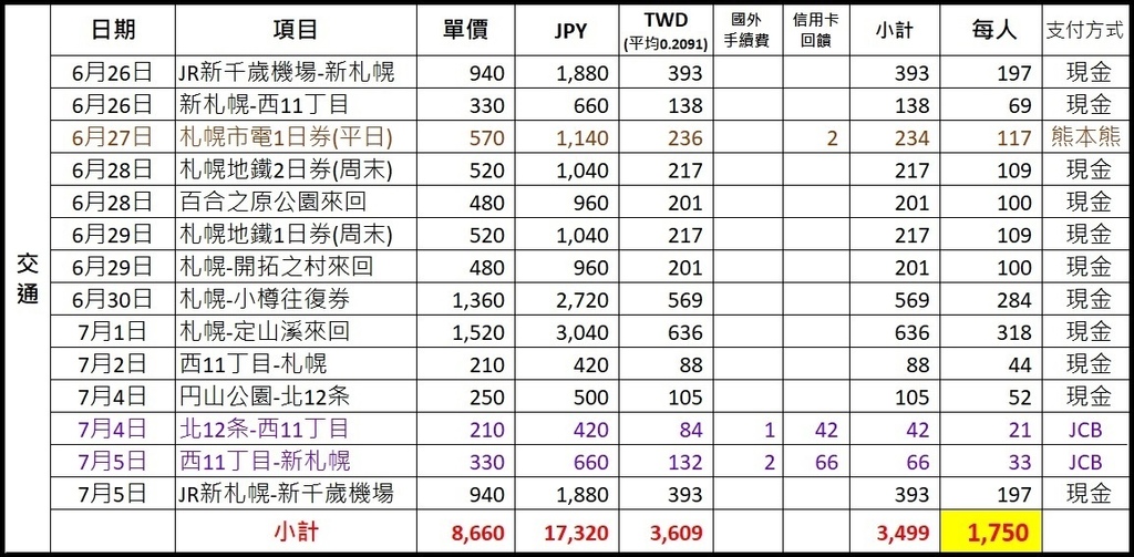 所以這邊的旅費,我就用2024年6月以來的即期均價0.2071+匯差0.002=現金0.2091去計算囉!