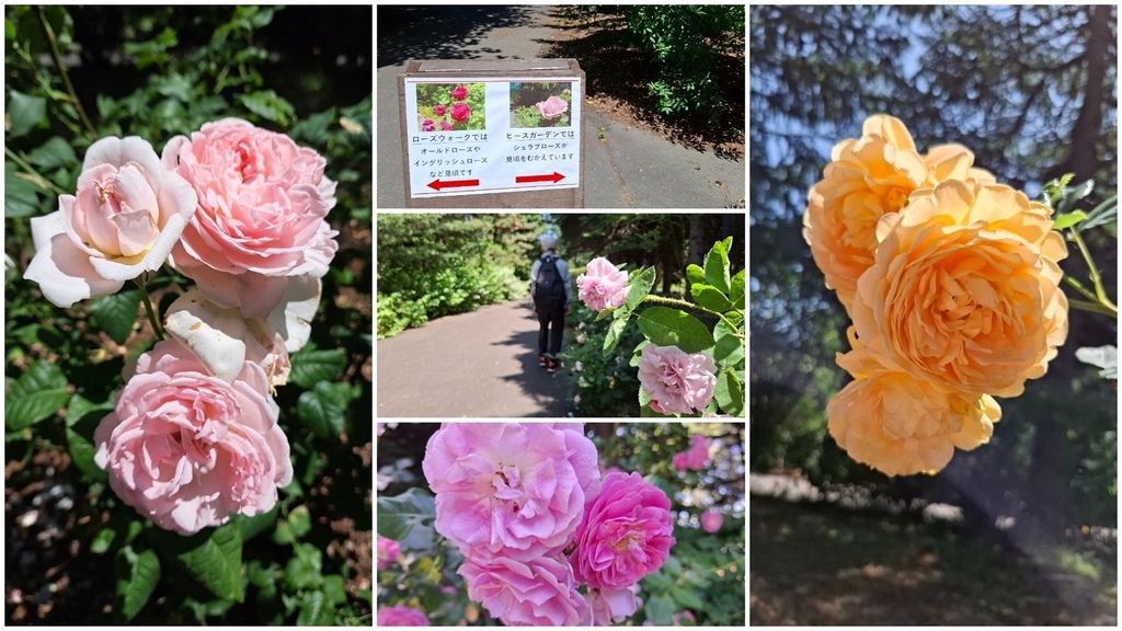 看到(6)「ローズウォーク/玫瑰漫步」的玫瑰盛開中的告示牌~那先走左半邊園區吧!