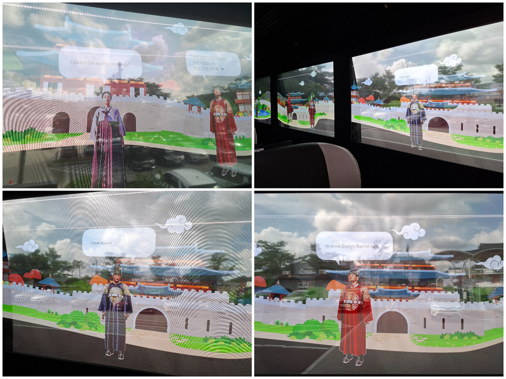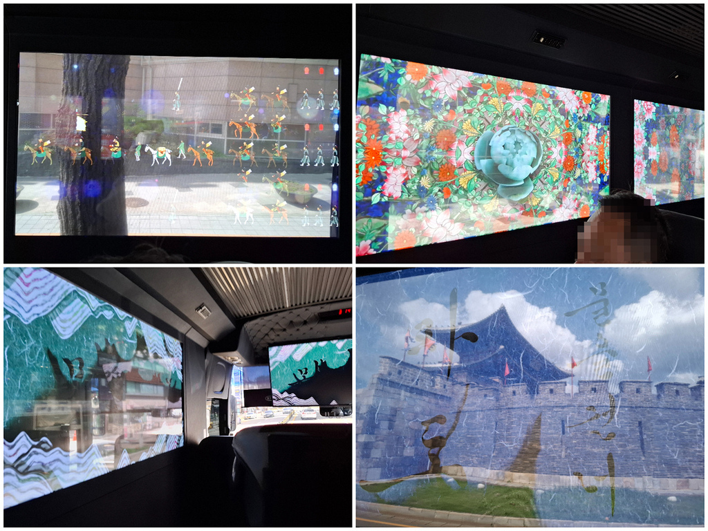 這輛是韓國首創也是唯一的XR巴士,XR是eXtended Reality(延展實境)的縮寫。外觀如一般的巴士,但車內卻彷佛是一架時光機,車窗上搭載令人驚艷的T-OLED(Transparent-OLED)透明顯示器,在行駛中顯示栩栩如生的圖像,以「1795年的回憶」(Memory of 1795)為主題,重現1795年朝鮮歷史上最大規模遊行「乙未行」的歷史場景。