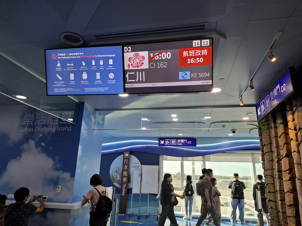 沒想到好不容易走到D2登機門,又再改時到16:50!