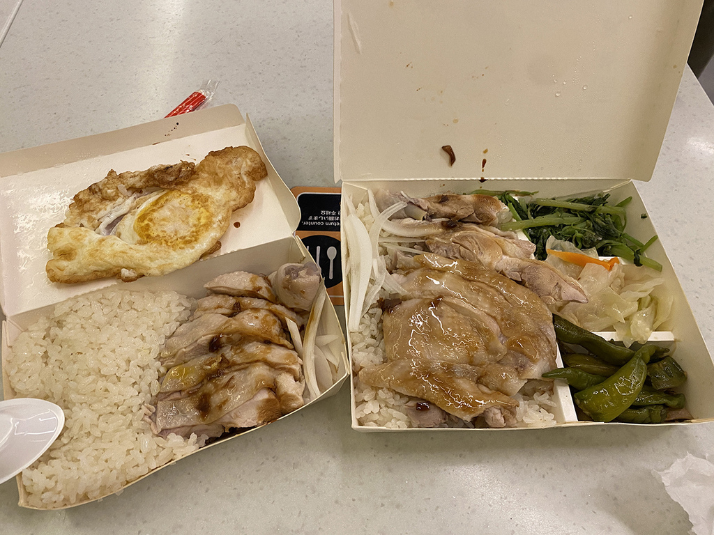 此行我們3人都沒有進機場貴賓室的機會了,但兒子的次數都還沒用到,只剩他可以自己去。想說也接近中午,他便先去華儲幫我們買海南雞飯便當,先在美食街吃午餐。