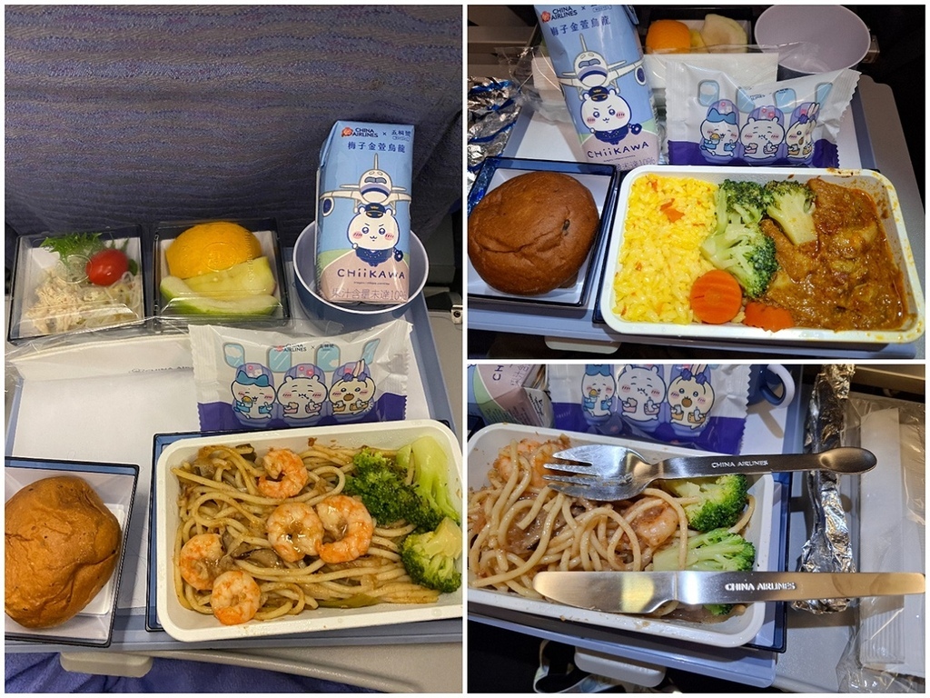 華航機上餐,海鮮炒麵的蝦子很多,還有跟五桐號合作梅子金萱烏龍,很不錯!