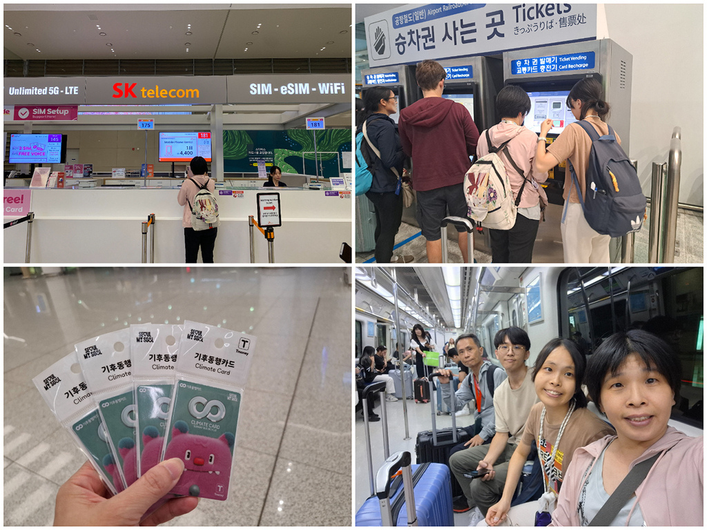 原本領取氣候卡要去4-5號出口間的SK Roaming Center櫃檯(24小時),現已移到7號出口,得多走好長一段路。氣候卡的範圍不包括仁川機場到首爾市區,也無法儲值;而且一儲值就是開始啟用,因此我們只是領空卡,等第3天再來儲值,因此我們便使用Tmoney搭車。