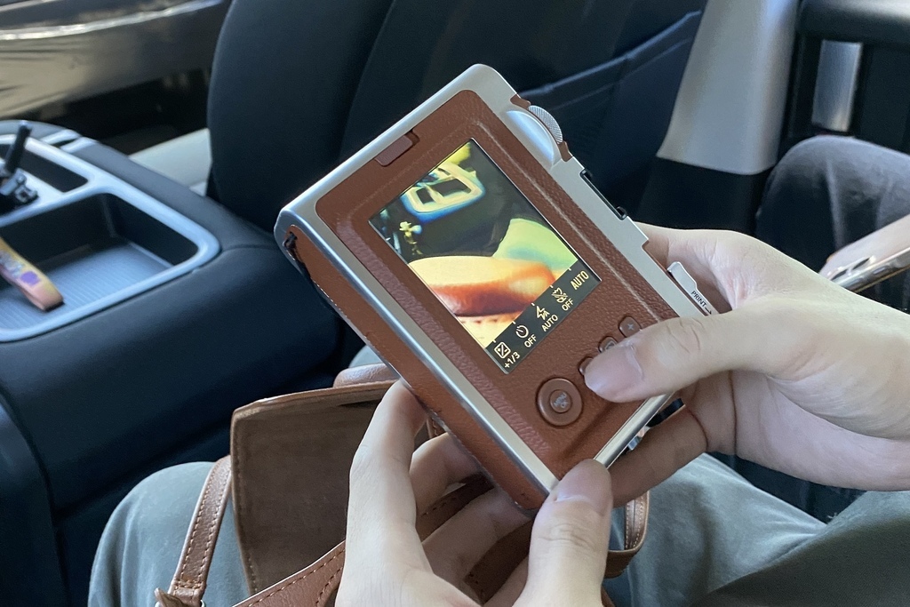 11:20先跟兒子約在桃機附近的台北關會合,一上車就跟妹妹分享他新買的富士拍立得相機,嘰哩呱啦講不停。