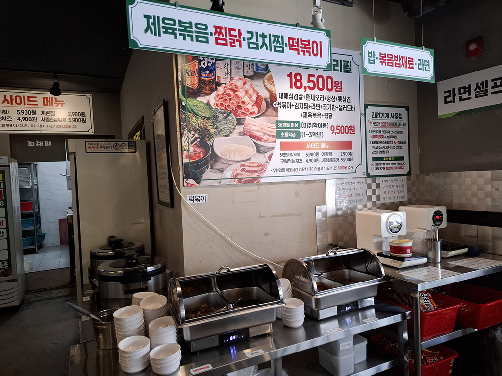 - 一般烤肉店1份五花肉也至少₩12000起跳,這家吃到飽₩18500起說起來不算貴。以前也是人氣很旺的烤肉店,可能是平日午間一般上班族就不太會來吃到飽,加上漲價後的價差也會影響來店意願。若有來壹山水族館Aqua Planet Ilsan,倒也可以參考看看。