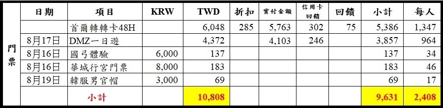 48小時【首爾轉轉卡】讓我們玩足3天省了很多門票費用,另外1天參加DMZ非軍事區一日遊(含麻長湖吊橋),這裡只能團進團出無法自行搭車前往,花費相對較高一些。