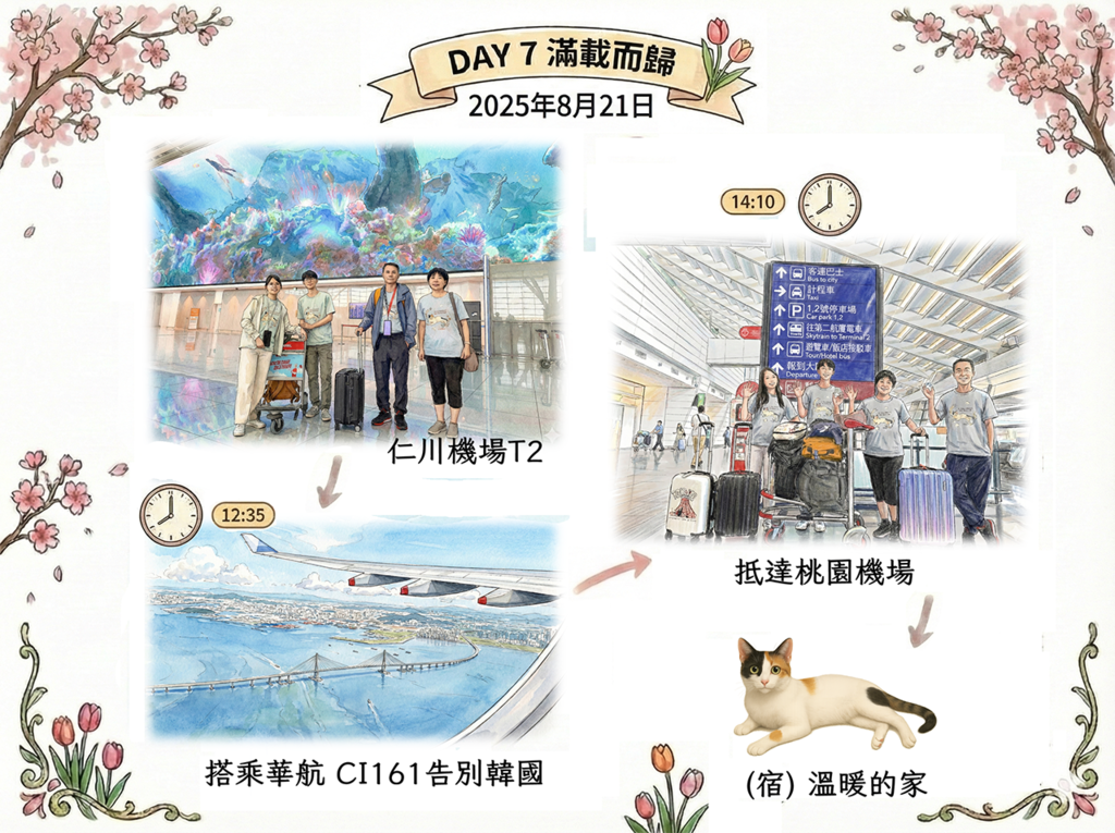 【氣候卡】07:25退房-09:35仁川機場T2-12:35 CI161起飛-14:10桃園T1-溫暖的家