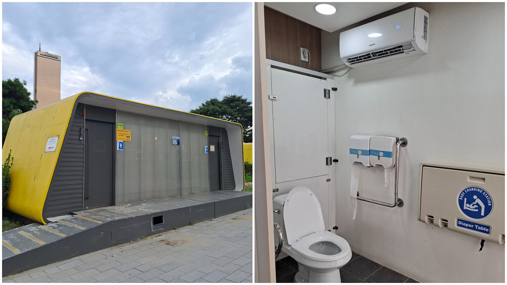 一般建築物的公廁有冷氣其實不算少見,但是連這種公園內的鐵皮屋公廁居然也有冷氣,那就太稀奇了吧!