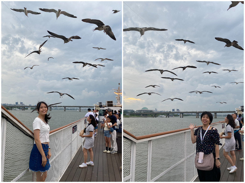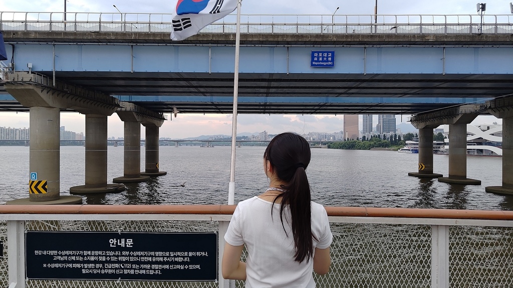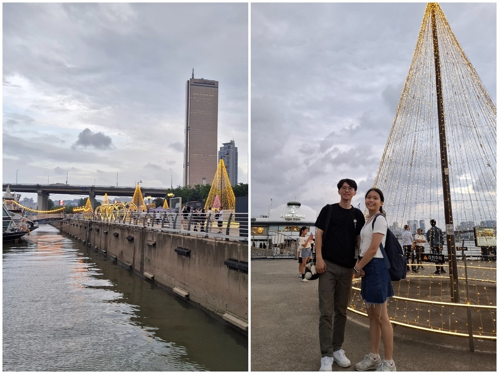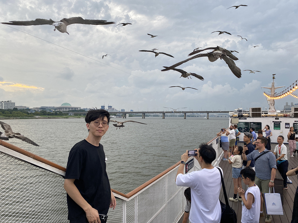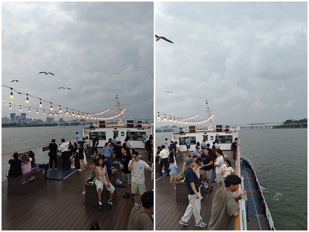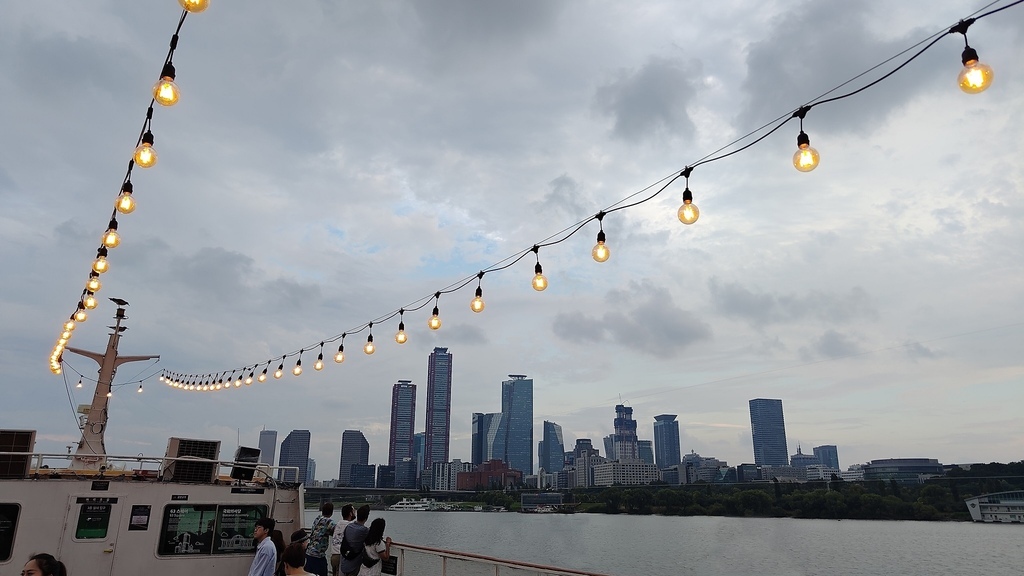 只是我們這次是8月中下旬去,日落時間要將近19:30了,日落遊輪只有18:00一個場次,還沒辦法欣賞漢江夕陽美景;也還好那天是多雲的天氣,不然可能就會比較曬。