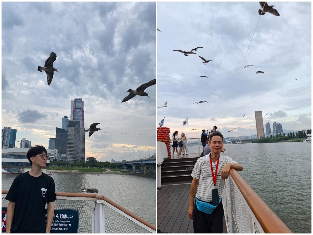 老公和兒子還沒搭過漢江遊覽船,今年全家再來首爾便改搭傍晚時段的「日落遊輪」,可以欣賞漢江夕陽和海鷗飛舞的景色。