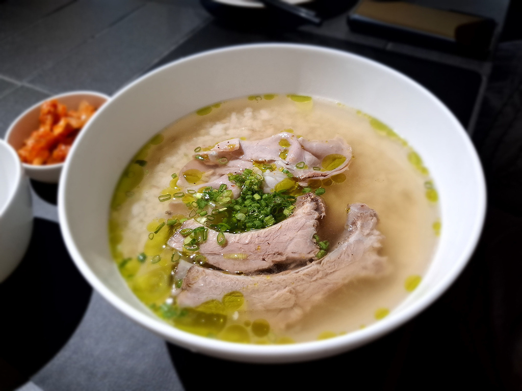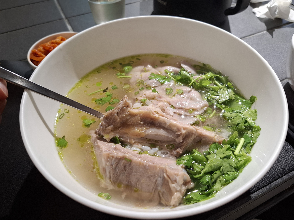 安岩豬肉湯飯的湯頭是清澈的,我個人是滿喜歡的。來韓國不一定都是辣的,可以搭配這種清爽的餐點。