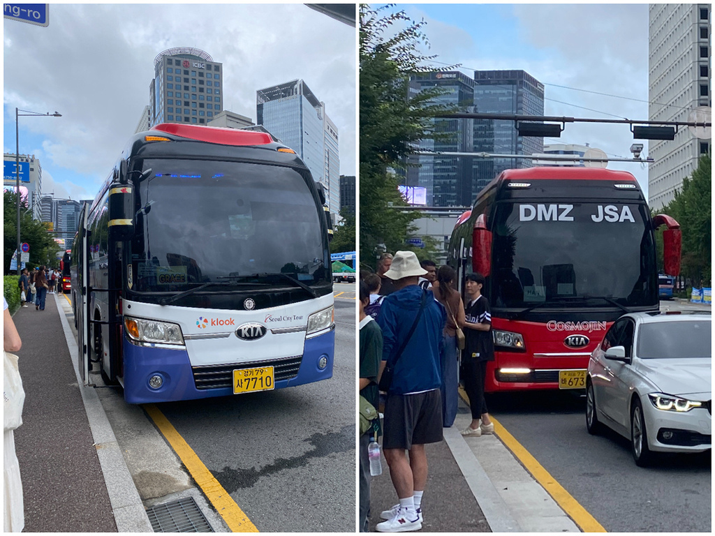 一走出6號出口,就看到路邊停靠一輛Klook的車,結果後面還有一輛擋風玻璃寫著偌大的DMZ,趕忙衝上前去,跟工作人員核對後才知不是我這團。