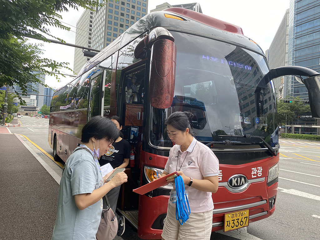 上車時領隊兼導遊發給我們每人一張名牌,萬一跟團體走散時可以請韓國人可以幫忙聯絡領隊。