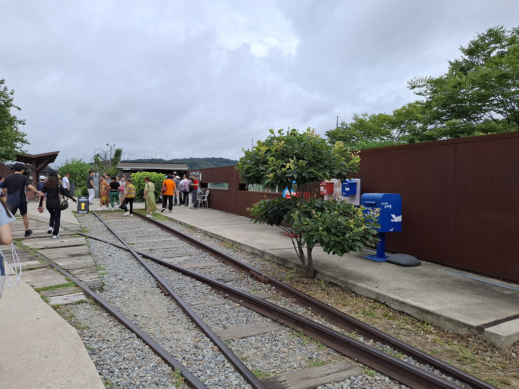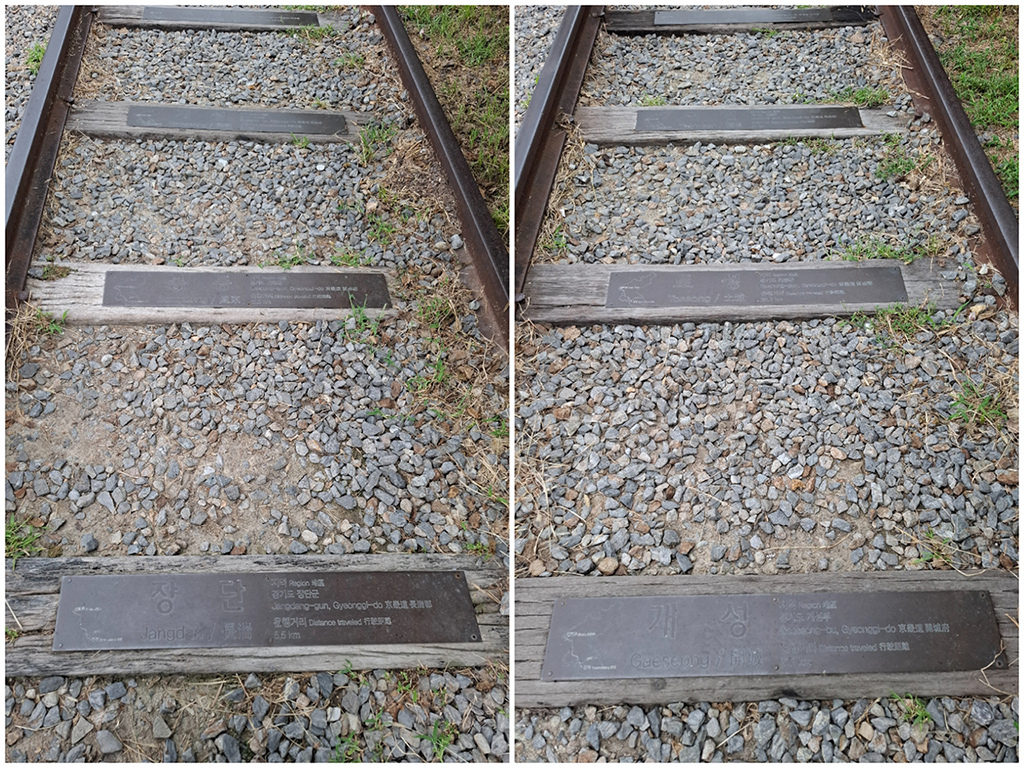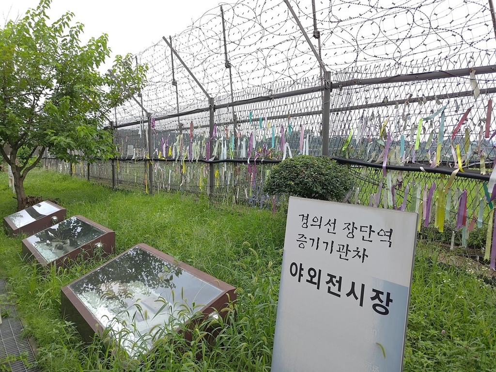 這條象徵京義線的鐵路軌道是由非軍事區長湍站附近廢棄的鐵軌和枕木回收利用而鋪設的。